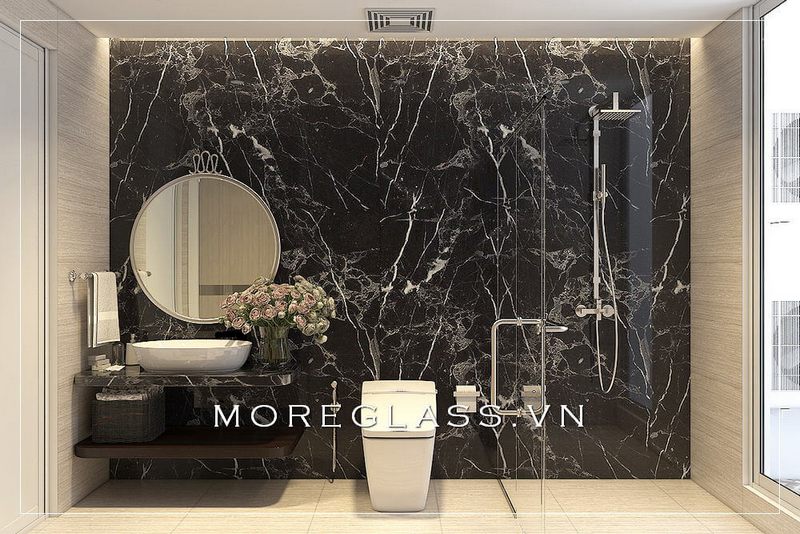 Vách kính giúp ngăn không gian phòng tắm đứng tránh bắn nước sang các khu vực khác còn làm nên không gian phòng tắm có thẩm mỹ cao, hiện đại