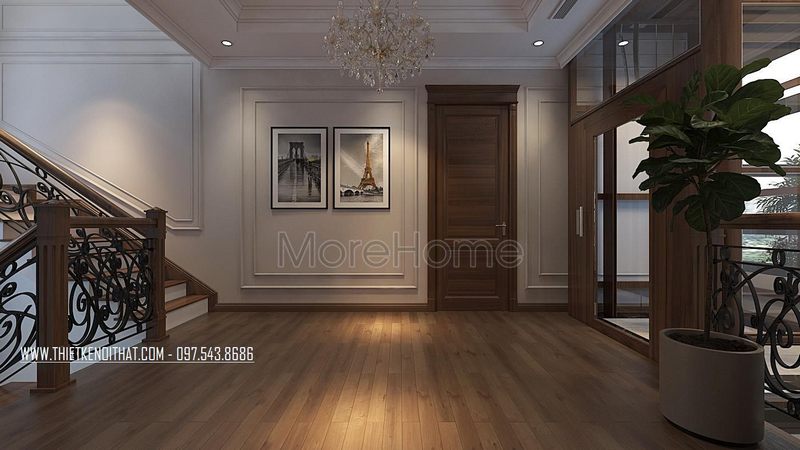 Đèn pha lê treo tường sang trọng tạo góc nhìn ấn tượng cho không gian hành lang đẹp.