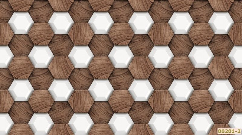 Giấy dán tường 88281-2 với họa tiết là những hình lục giác màu nâu và trắng xếp cạnh nhau