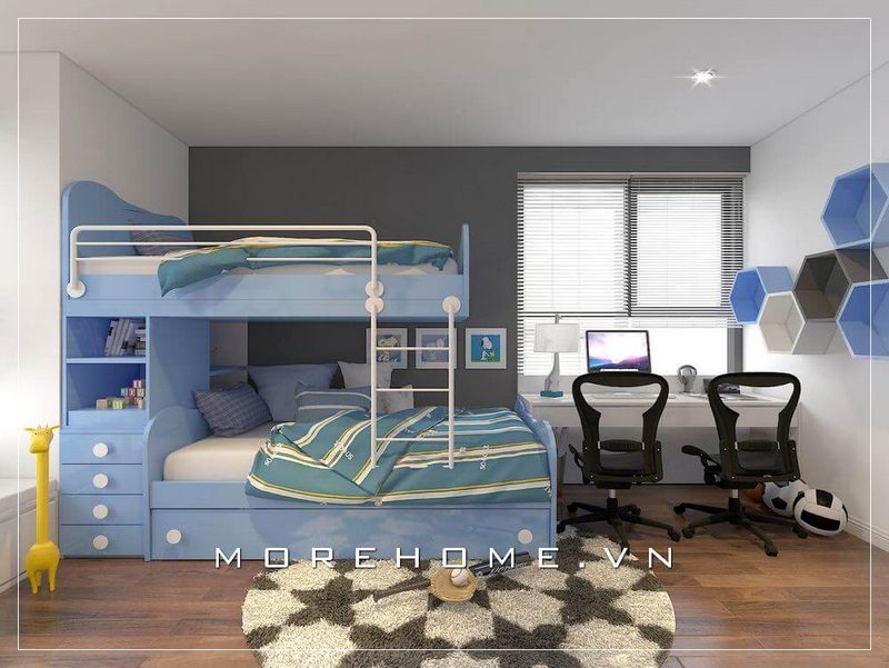 Nội thất phòng ngủ hiện đại, chất liệu gỗ công nghiệp màu xanh là sự lựa chọn hoàn hảo cho không gian phòng ngủ bé trai