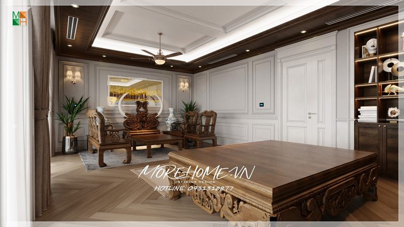 Bàn thờ gỗ óc màu nâu được chạm khắc hoa văn tinh tế có tính thẩm mỹ cao cùng với chất lượng bền bỉ trong thời gian dài là rất quan trọng.
